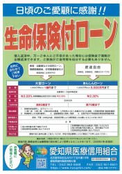 | ◆生命保険付ローン *借入返済中、万一ご本人にご不幸 があった場合には保険金で債務を 全額返済 ◇大型ローン…非事業性資金 1億円まで ◇あんしんローン…使途自由 5千万円まで |